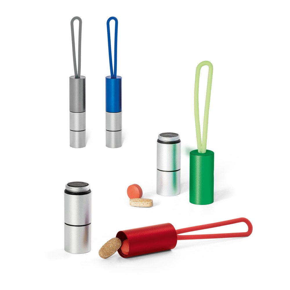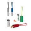 Lanterna em alumínio com 1 LED, porta comprimidos e fita em silicone. Incluso 3 pilhas LR44. ø17 x 73 mm | Pega de silicone: 60 mm.