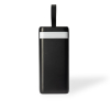 Descrição: Power bank em plástico com capacidade de até 20.000mAh. Possui quatro cabos integrados com saídas Lightning, USB-C, Micro-USB e USB. Conta ainda com duas entradas, uma USB-A e outra USB-C, painel de LED numérico e lanterna frontal e alça fixa em couro sintético para transporte. Acompanha cabo USB-C.