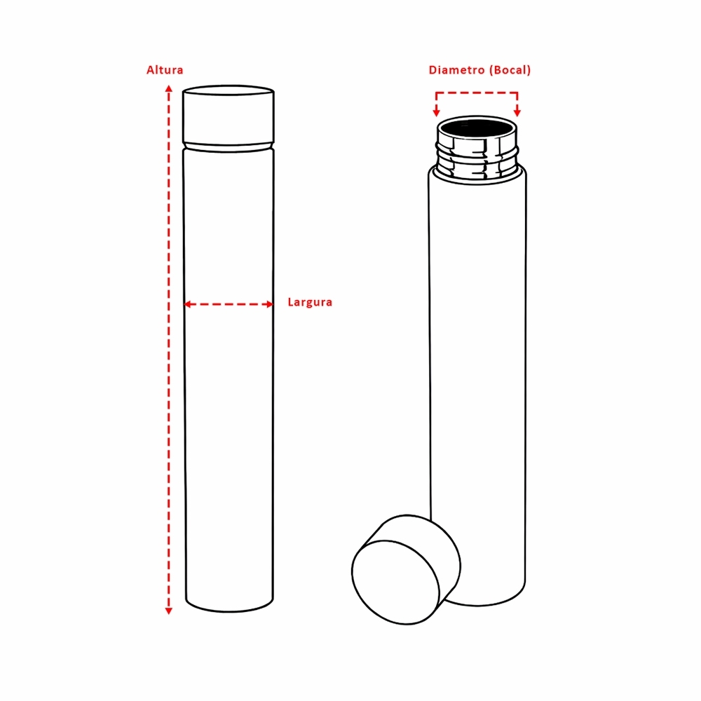 Descrição: Garrafa em inox 304 com tampa rosqueável e capacidade para até 250ml.
