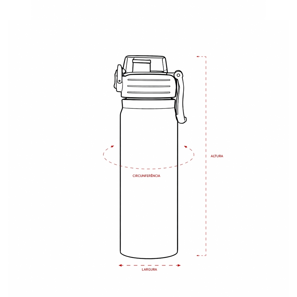 Descrição: Garrafa térmica com capacidade para até 680ml. Feita em inox 304, possui estrutura de parede dupla e vedação a vácuo, permitindo a conservação da temperatura de líquidos por mais tempo. Conta com tampa rosqueável com trava de segurança, botão de acionamento para abrir a tampa protetora do bocal e alça para transporte. Acompanha um canudo plástico para encaixe no interior da garrafa.