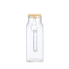 Descrição: Jarra de vidro borossilicato, material resistente à oscilações de temperatura. Com capacidade para até 1 litro, possui marcação de capacidade no corpo do recipiente e tampa de bambu com anel de vedação. Acompanha tampa protetora para o bico em silicone.