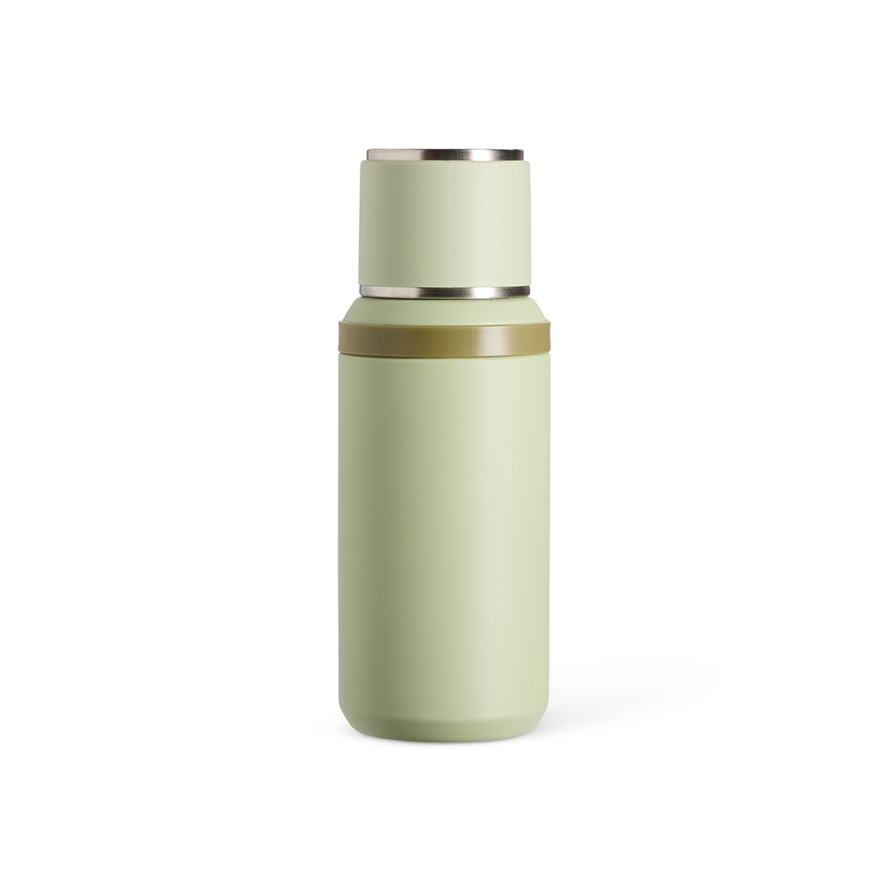 Descrição: Garrafa térmica em inox com pintura eletrostática e capacidade de até 600ml. Possui estrutura de parede dupla e tampa interna rosqueável com anel de vedação, abertura do bocal por botão de acionamento e infusor. Conta ainda com tampa externa em formato de caneca e alça emborrachada para transporte.